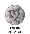 metal shank button with carved heart design. Also shown in antique