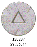 button with shank. Indented triangular patterns in the middle and edges.