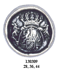cast metal button with hammered look and British crest design. Also
